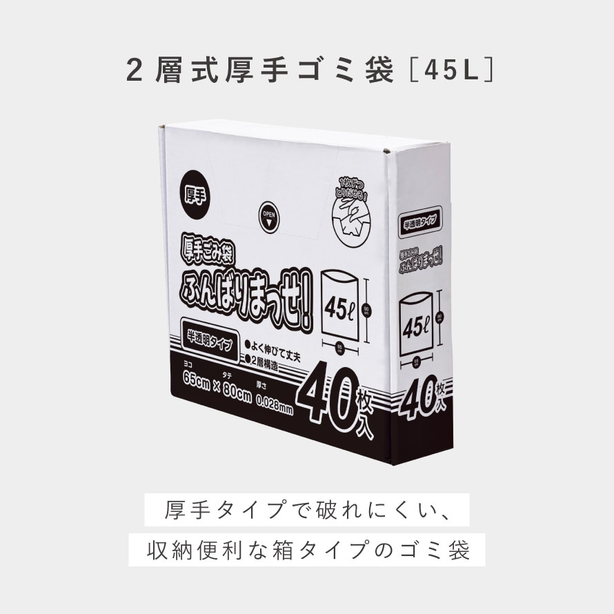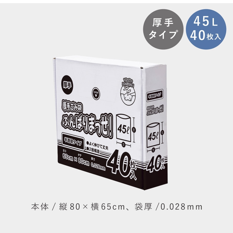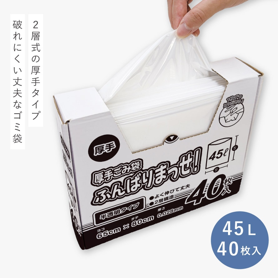 ゴミ袋 45l 40枚入 厚手 破れにくい 半透明 45リットル ごみ袋 年末 大掃除 便利グッズ 厚手ごみ袋ふんばりまっせ! 45L 40枚入