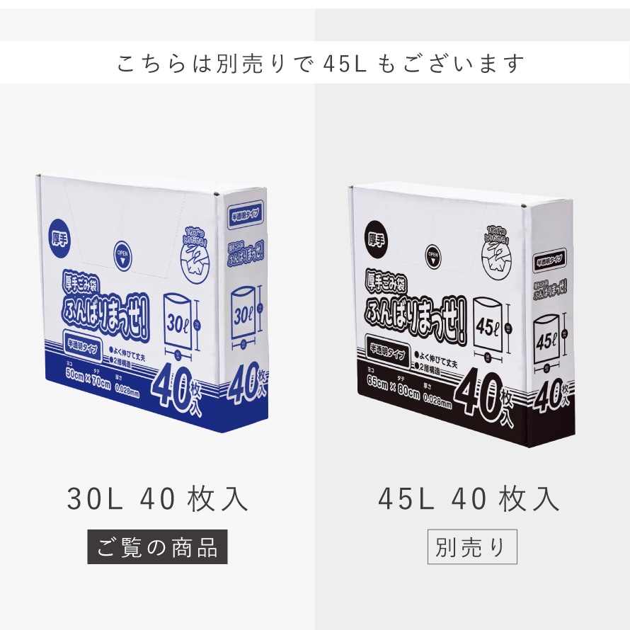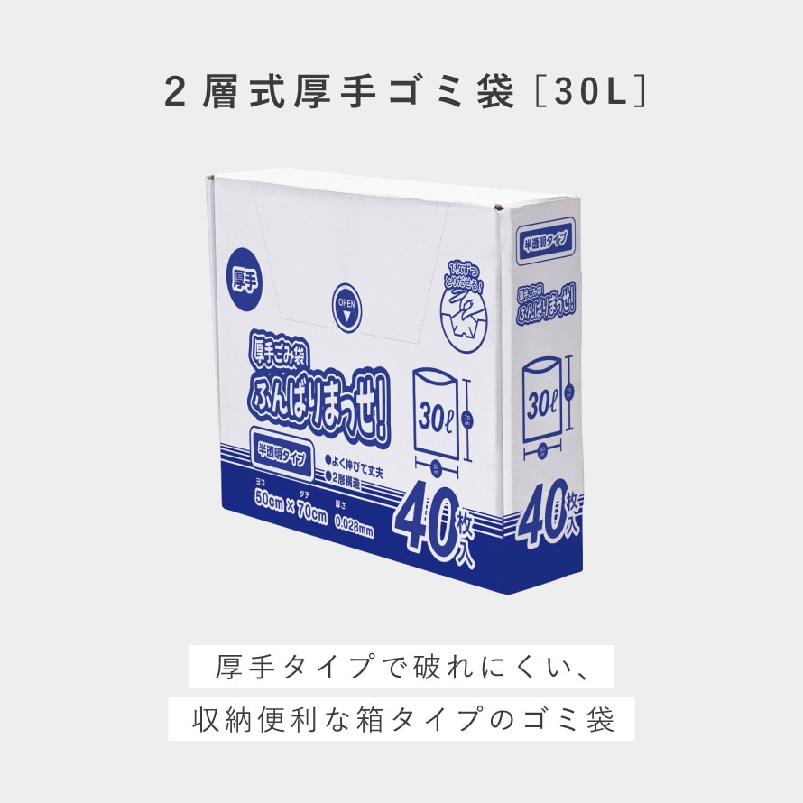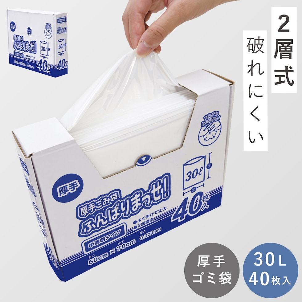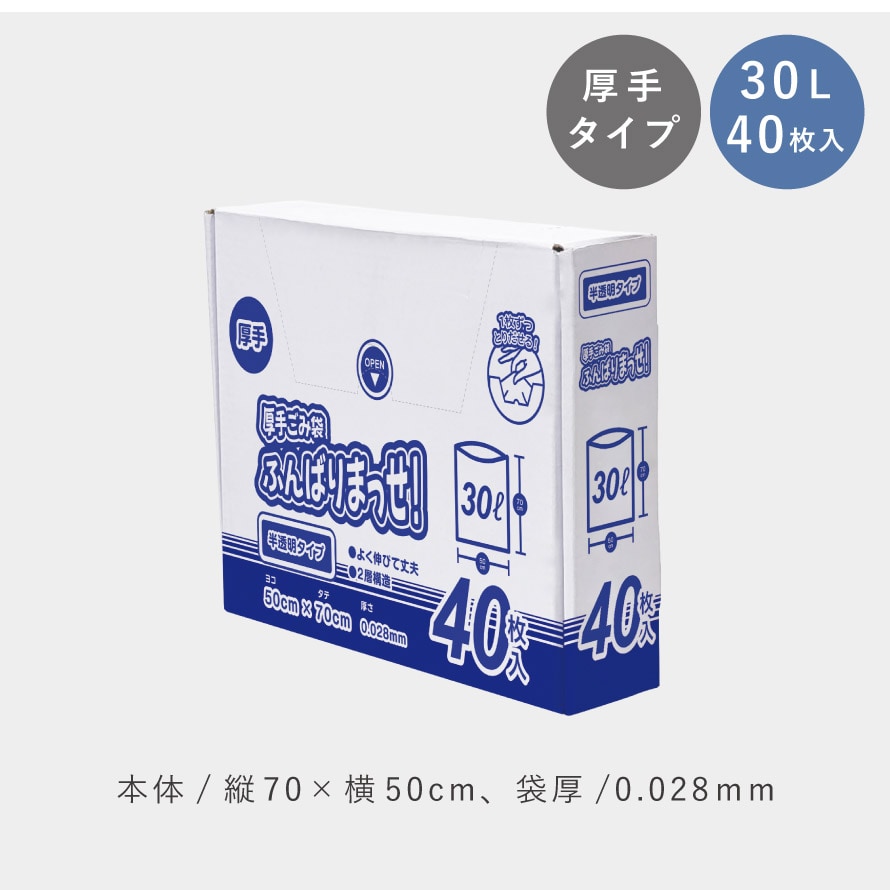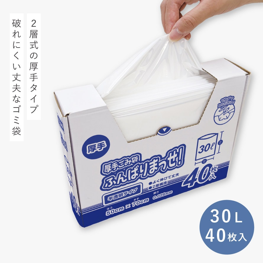 ゴミ袋 30l 40枚入 厚手 破れにくい 半透明 30リットル ごみ袋 年末 大掃除 便利グッズ 厚手ごみ袋ふんばりまっせ! 30L 40枚入