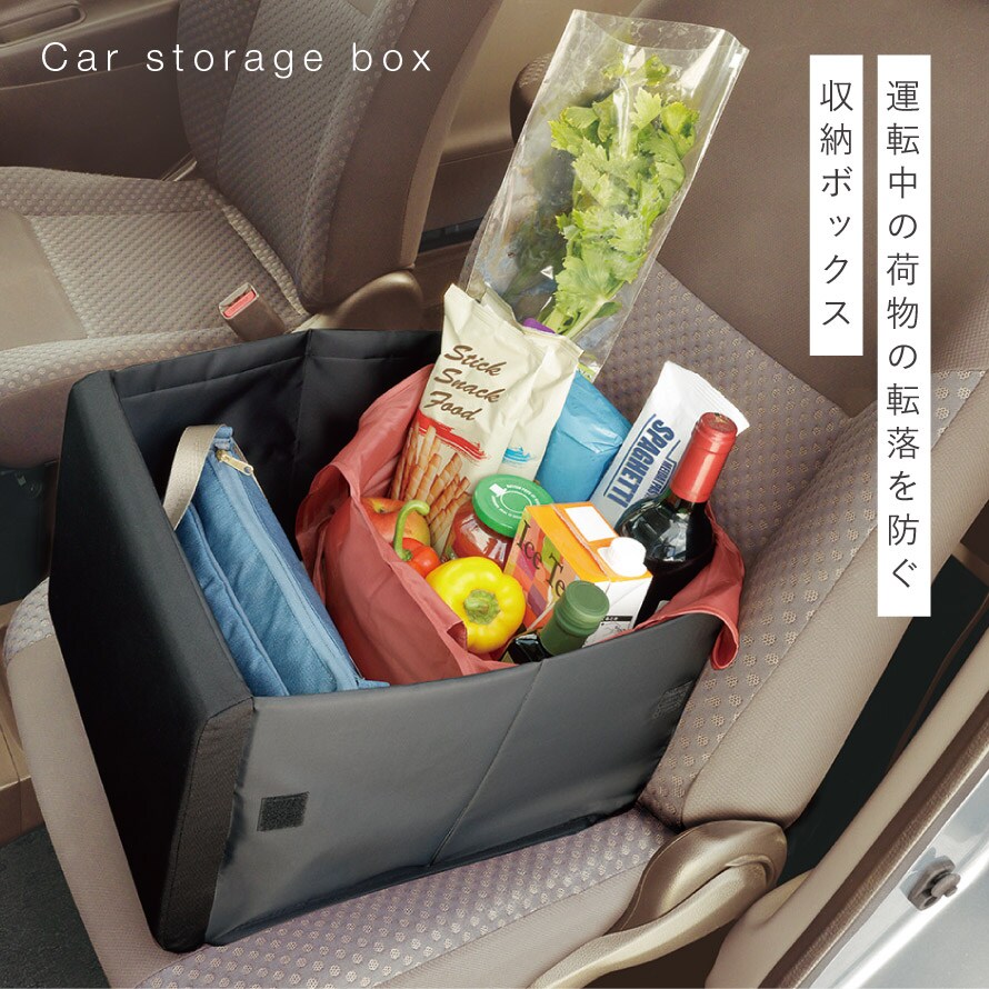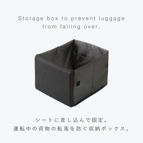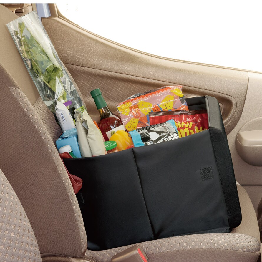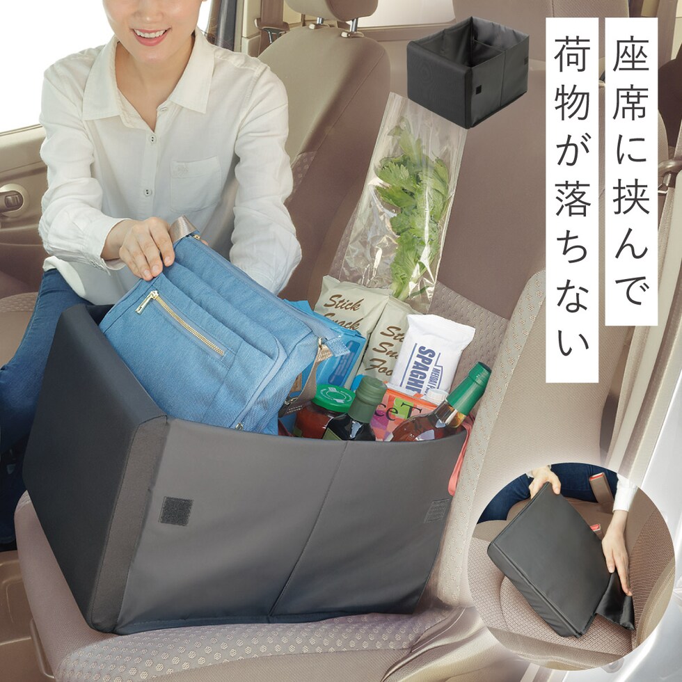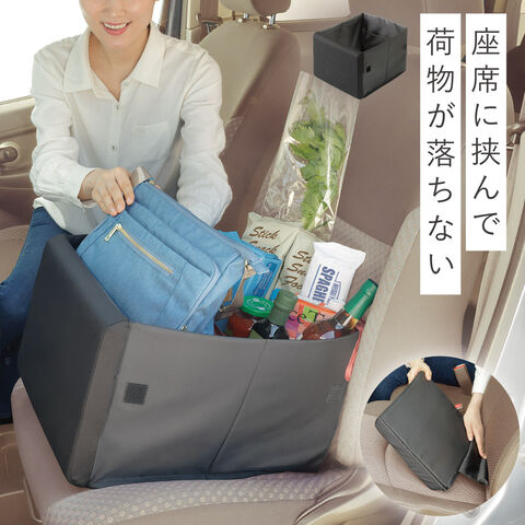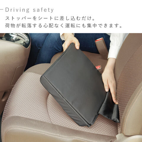 シートに差し込んで固定。運転中の荷物の転落を防ぐ収納ボックス。