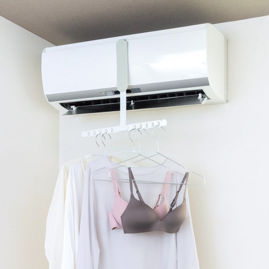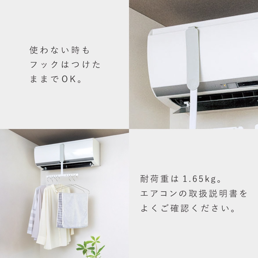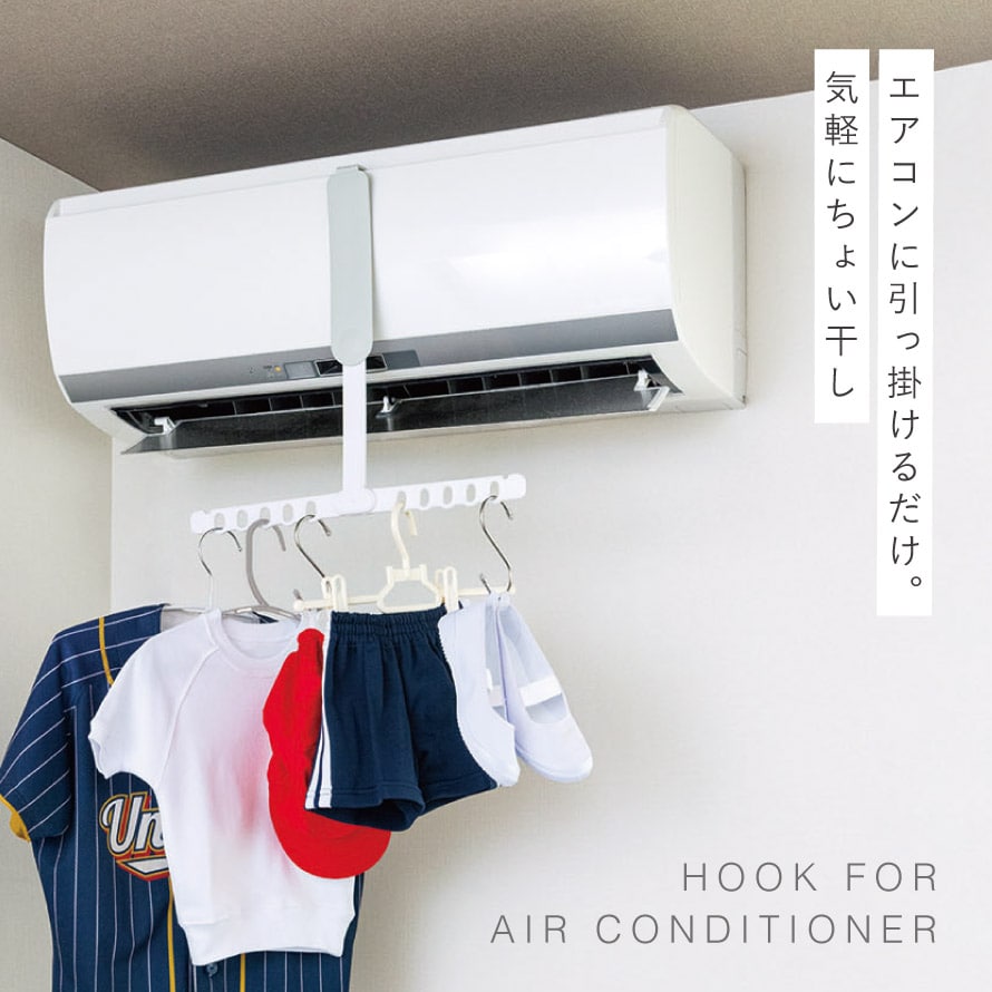 エアコンに引っ掛けるだけの簡単設置。気軽にちょい干しスペースができる便利フック。