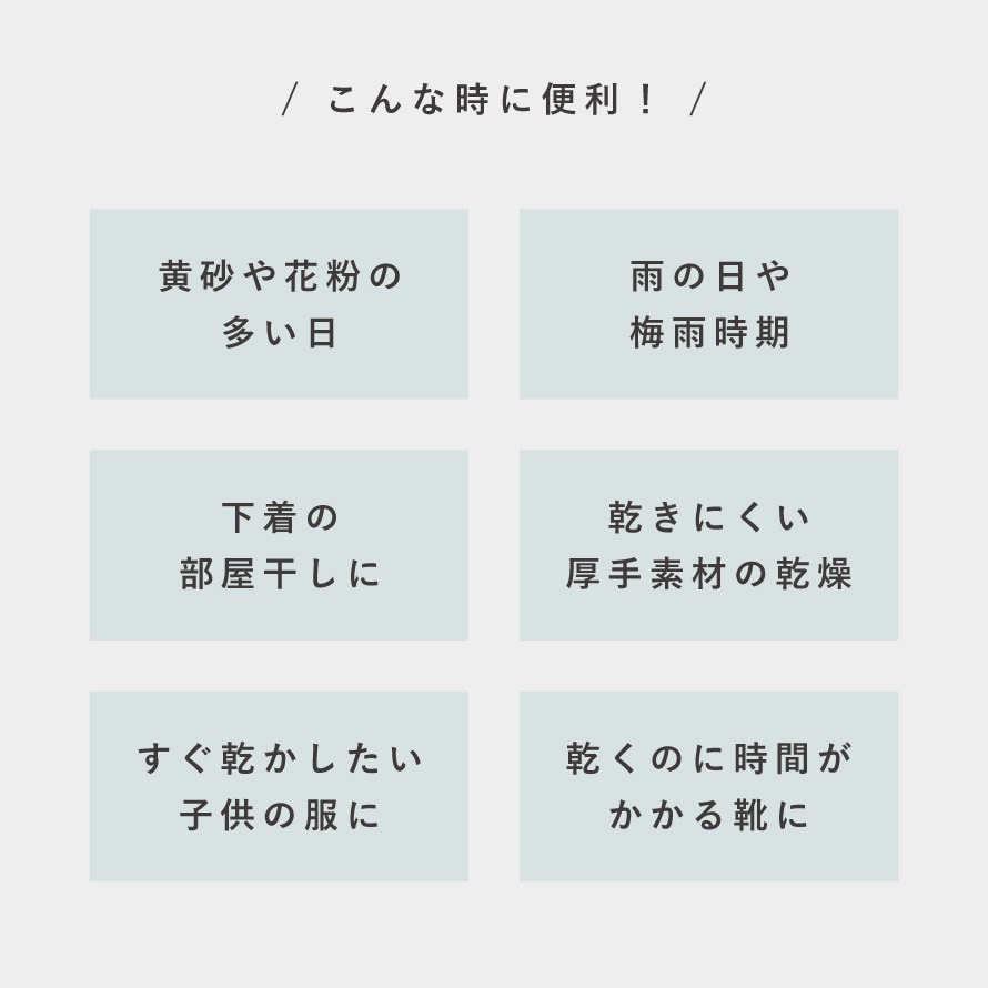 ・乾きにくい厚手素材の乾燥に