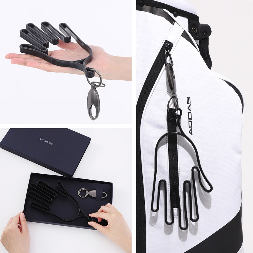 ゴルフ好きの方からのリクエストで誕生した、ゴルフ手袋用のハンガー付きのセットで、手袋を使用して汗をかいた時や、雨が降って濡れてしまった時など、乾かす際に重宝します。