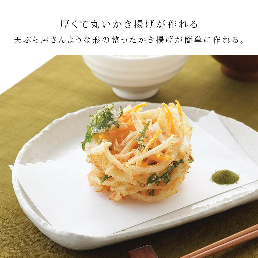 まるで天ぷら屋さんのような、厚みと形の整ったかき揚げが簡単に作ることができます。