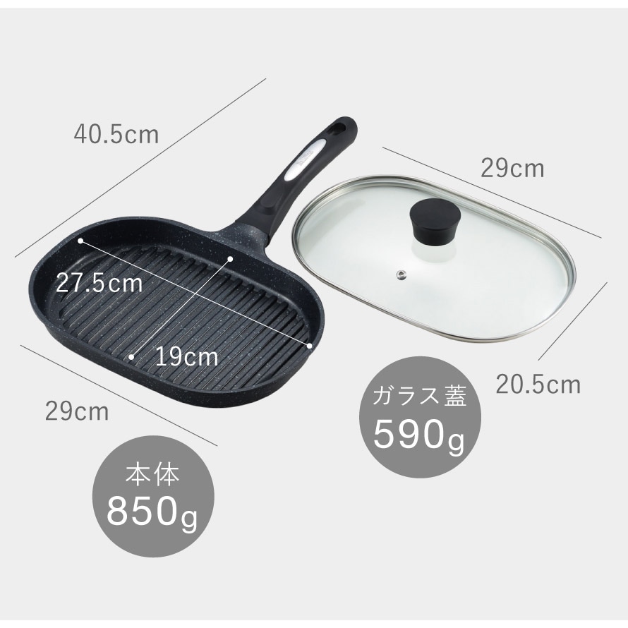 | 重量 | グリルパン/850g、ガラス蓋/590g |