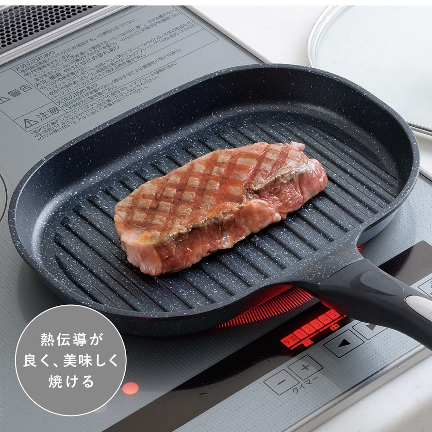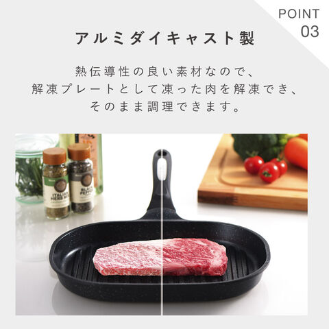 熱伝導性の良いアルミダイキャスト製なので解凍プレートとして凍った肉を解凍でき、そのまま調理できます。