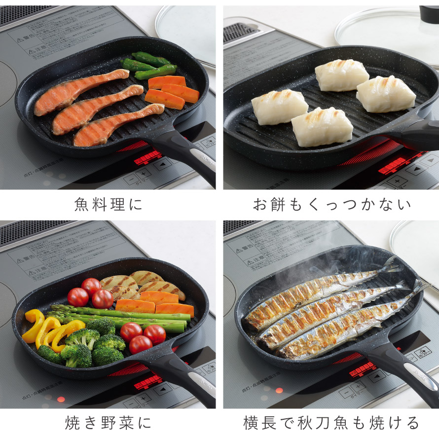 グリルで焼くと洗うのが大変なサンマや鮭の切り身も、焦げ付きにくいベルフィーナコートなので簡単にお手入れできます。