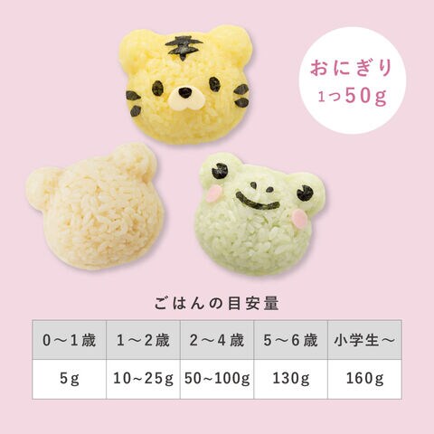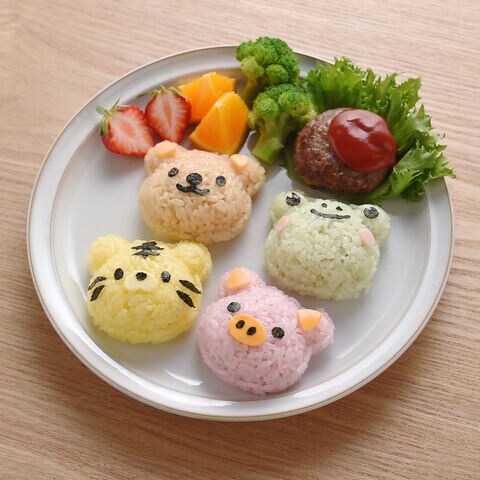 ひとつのおにぎり型で4種類の動物おにぎりが作れる、おにぎり型とカッターのセット。毎日のお弁当づくりやおうちごはん、イベントごはんまで、見た目が楽しくなるキャラおにぎり作りに活躍します。動物モチーフでお子さまの食欲アップにもおすすめです。