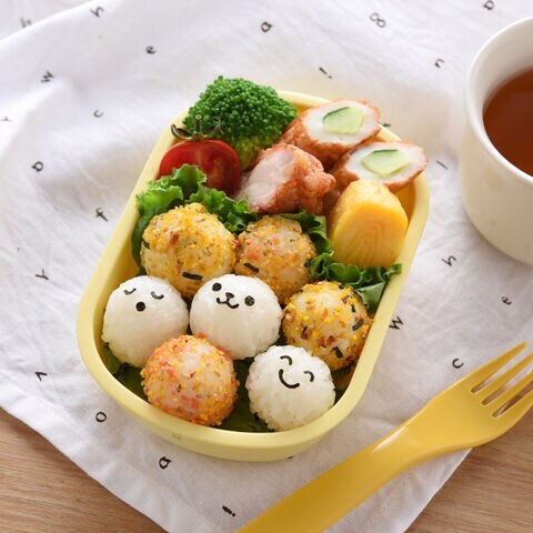 白ご飯でシンプルに作るだけでなく、ふりかけをまぶしたり、混ぜご飯や炊き込みご飯で色付けしたりとアレンジ自在。抜いた海苔パーツを貼るだけでキャラおにぎり風に仕上げられ、子どもが喜ぶ楽しいお食事時間に。