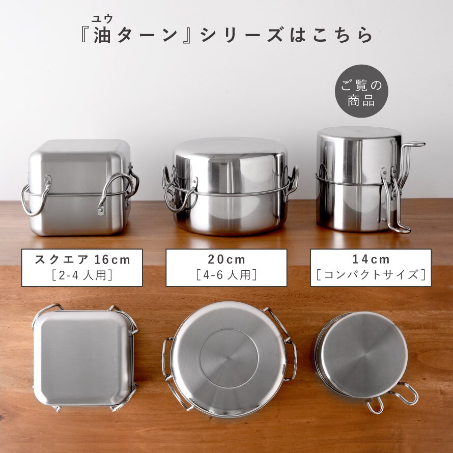 揚げ物 鍋 IH対応 ガス 燕三条 日本製 ステンレス 天ぷら鍋 揚げ鍋 取っ手も場所を取らない 油ターン ユウターン 14cm
