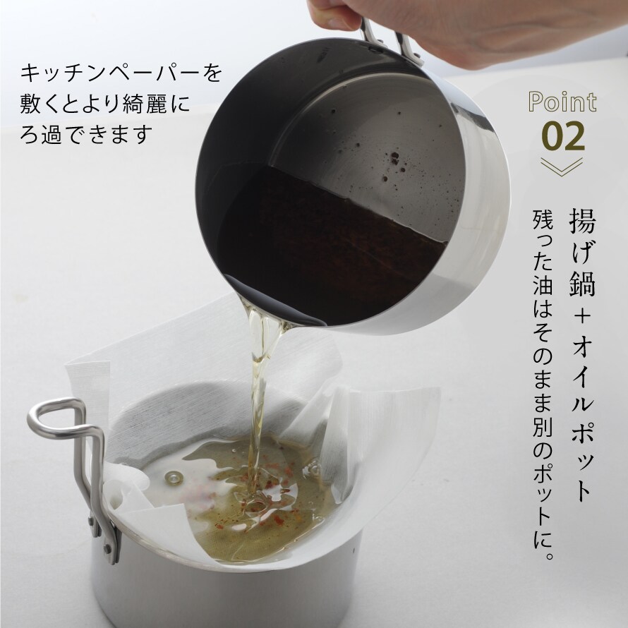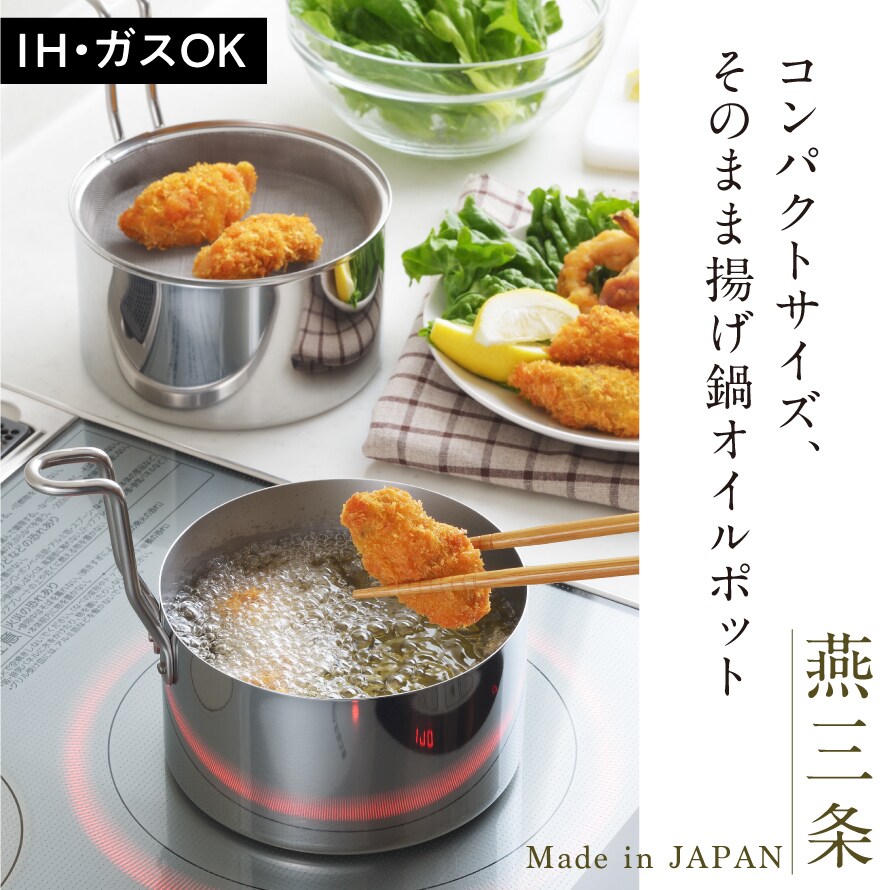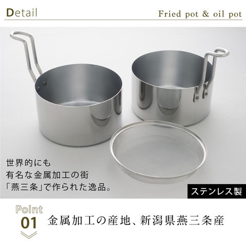 お弁当作りに便利な小サイズの揚げ鍋セット!揚げ鍋がそのままオイルポットとして使えます。