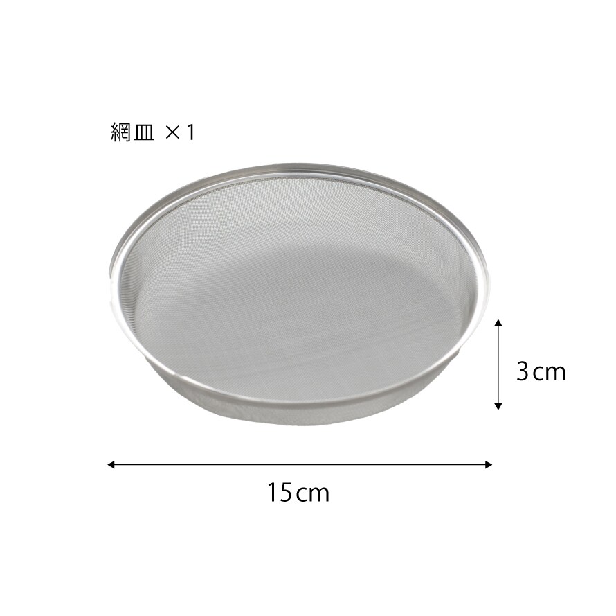 揚げ物油切り用と、ろ過用の兼用網皿付です。よりろ過したい時はキッチンペーパーを敷くと良いです。