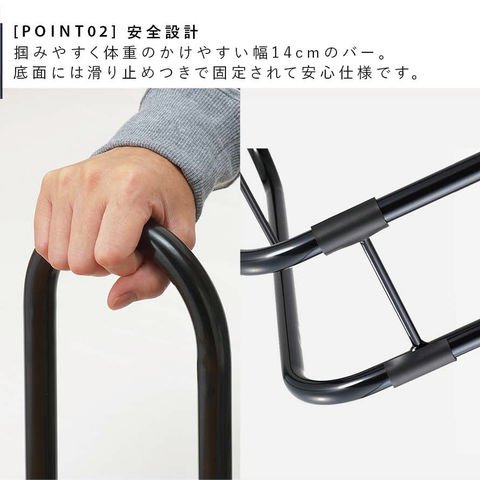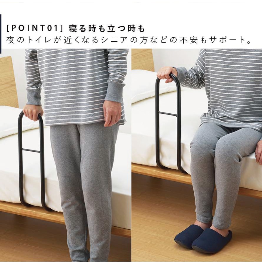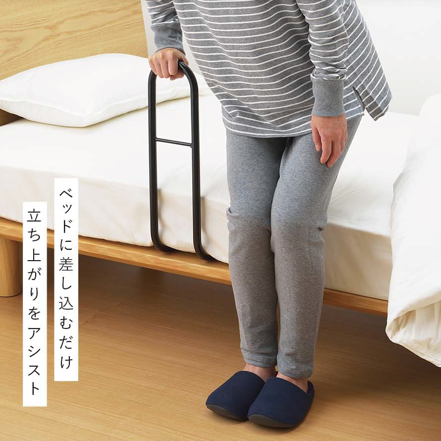 ベッドからの寝ている時の起き上がりや、ベッドから降りたあとの立ち上がりが安心でスムーズにできます。
