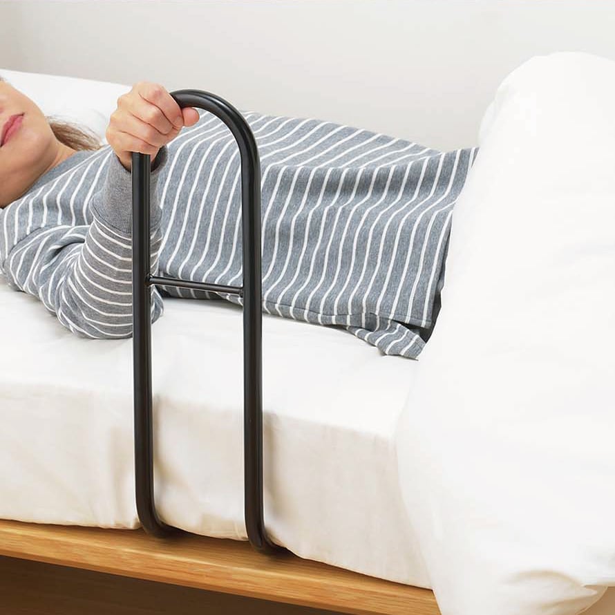 ベッドから起き上がりや、立ち上がりをアシストするベッドに設置できる手すりです。