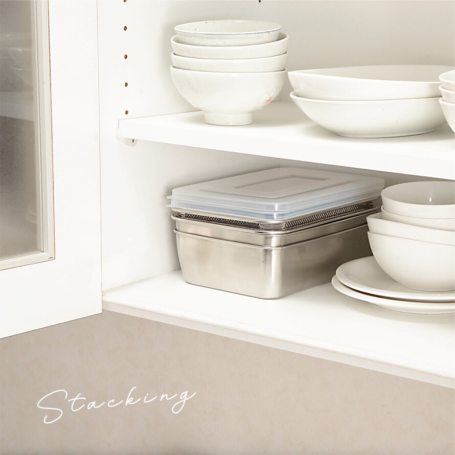 スタッキングできる深型なので、収納場所にも困りません。