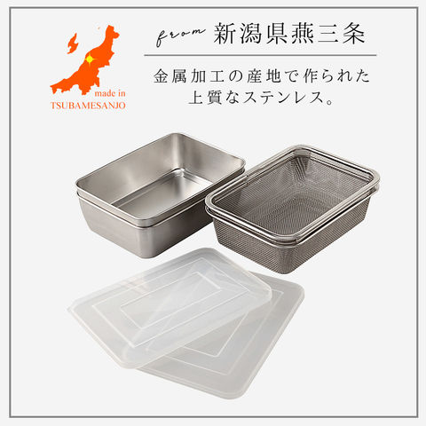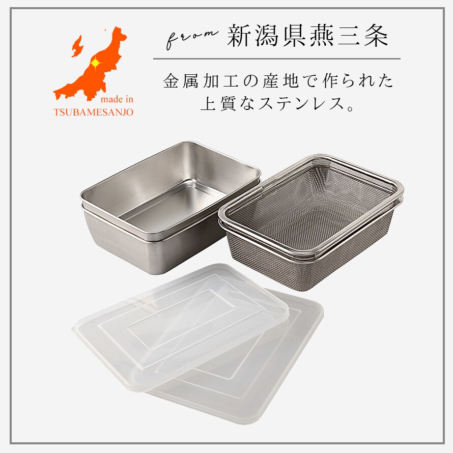 燕三条 ステンレス バット ステンレスバット ざる ザル 網 セット 角型 深型 蓋付き キッチンバット 蓋付き深型ステンレスバット・角型ザルセット