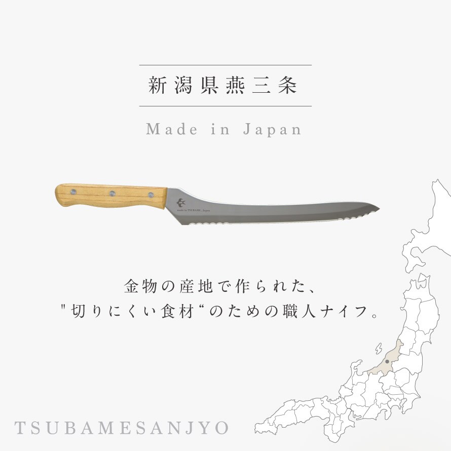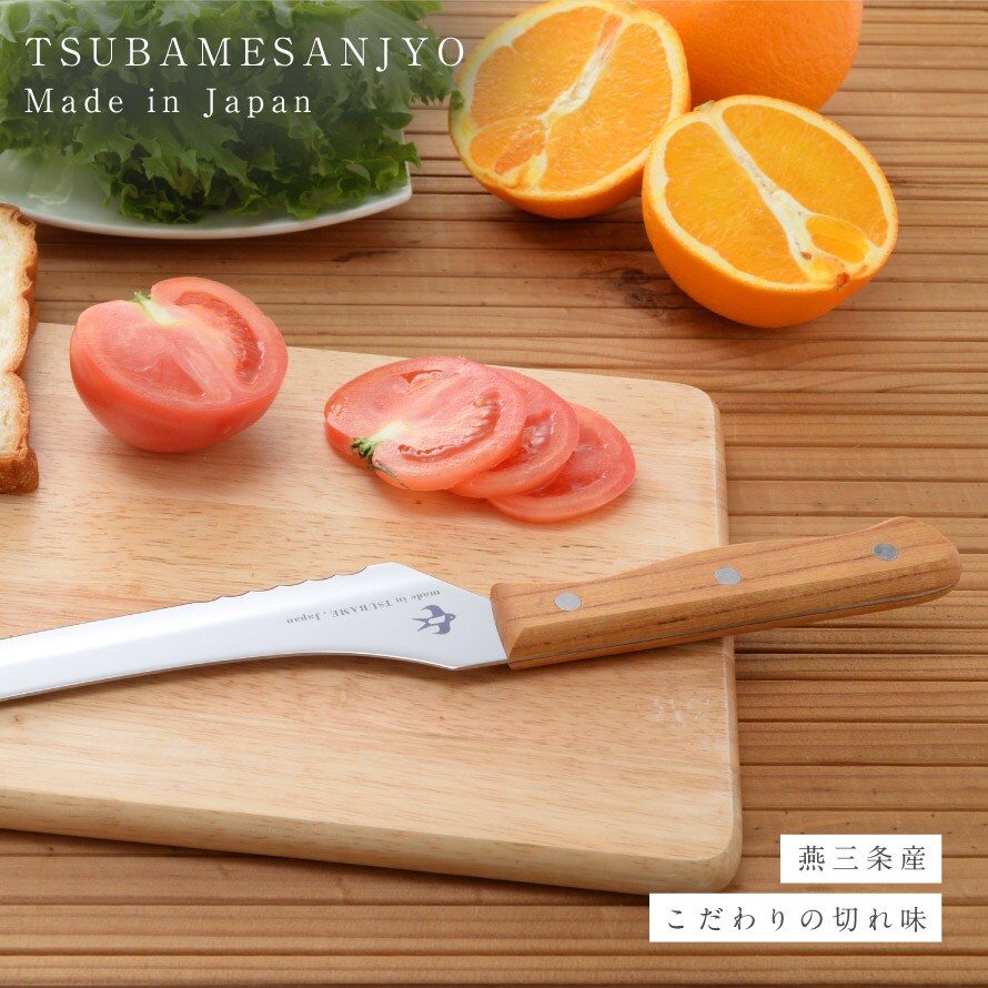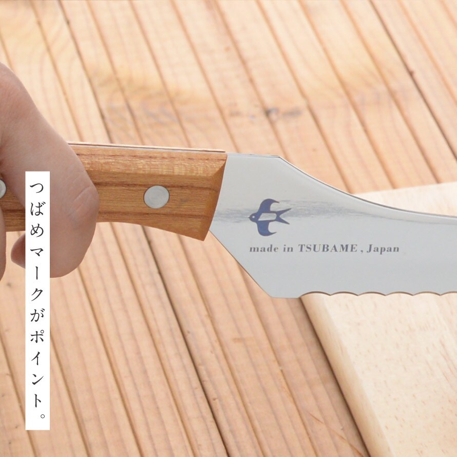 金属加工の産地「燕三条」の職人が作り上げた、切れ味にこだわったパンナイフ。可愛い「つばめ」のマークがポイント。