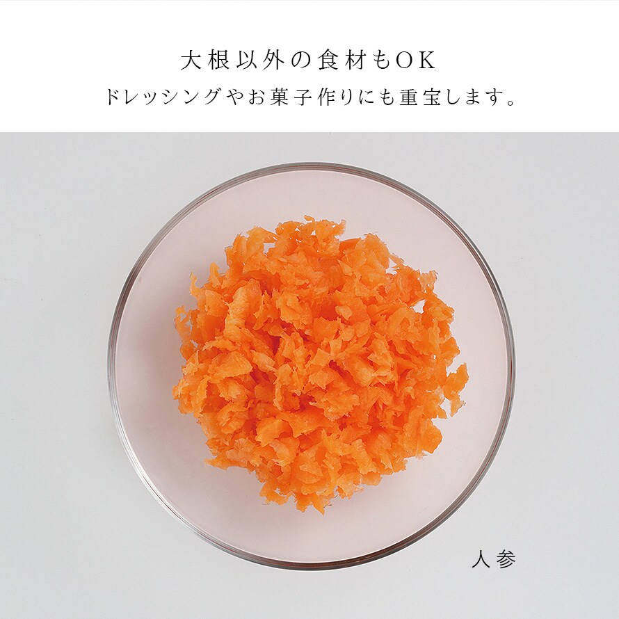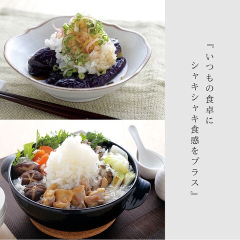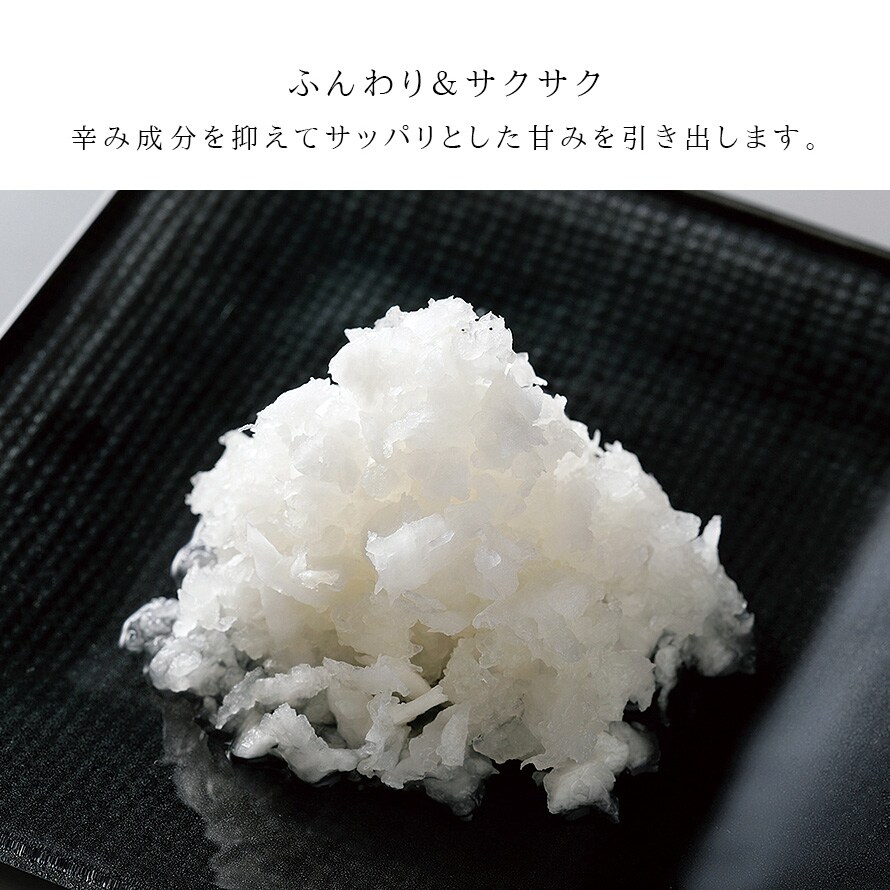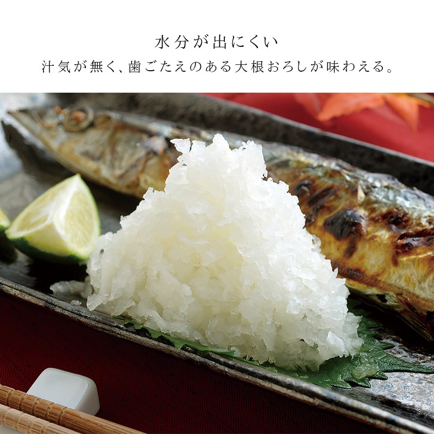 シャープな切れ味で、鬼おろしを削った大根よりもさらにシャキシャキした食感を味わうことができます。