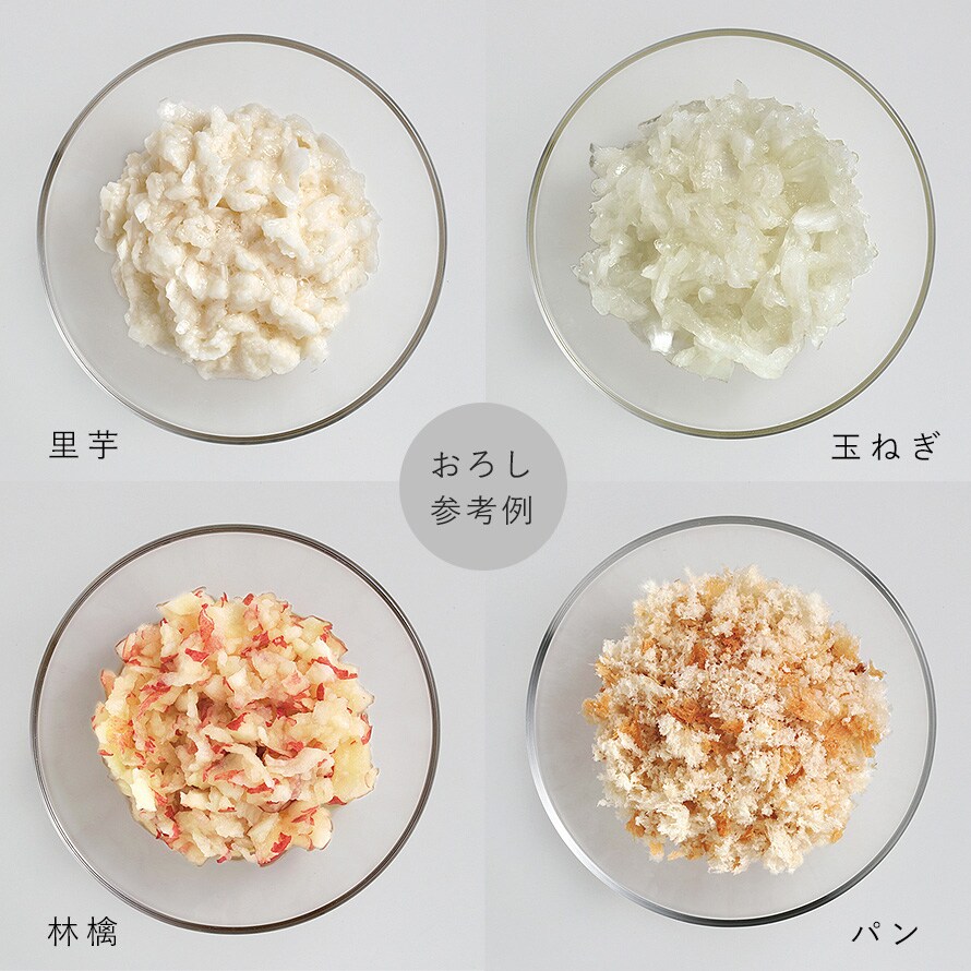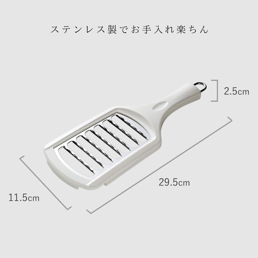 | 材質 | ボディ/ABS樹脂(耐熱80度)、おろし金、フック/ステンレス鋼 |