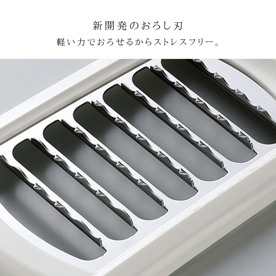 軽い力でおろせるからストレスフリー!新開発のおろし刃を使用。
