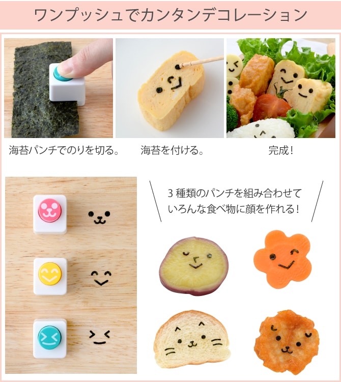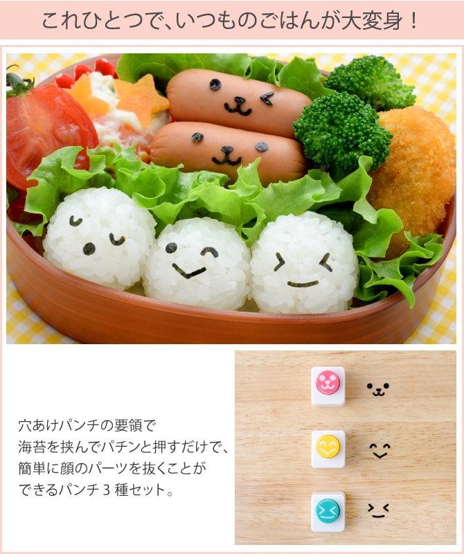 3種類の海苔パンチを組み合わせることで、色んな表情を作ることができます。