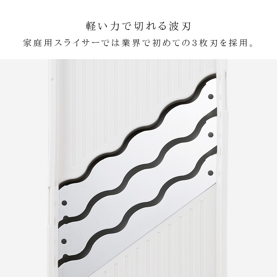 "切れ味"を追求した波形の切れ刃で抵抗が少なくスムーズなスライスを実現。