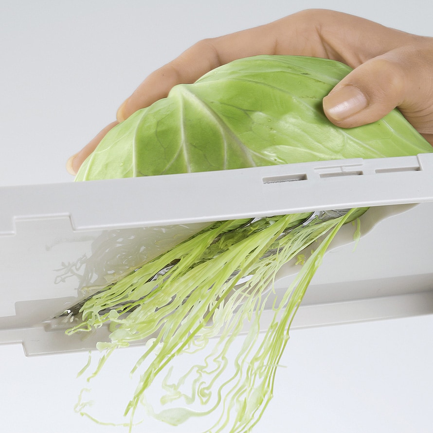 調理の手間を大幅に短縮することができ、特に手間のかかるキャベツの千切りに威力を発揮する時短調理器具です。
