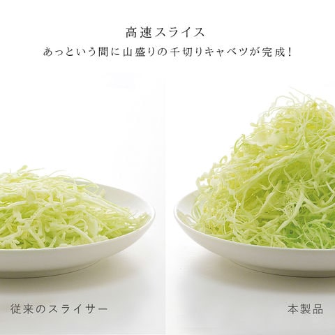 3枚刃の高速スライスで、あっという間に山盛りキャベツが完成!
