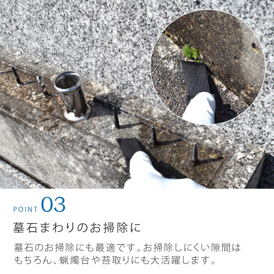 墓石のお掃除にも最適です。お掃除しにくい隙間はもちろん、蝋燭台や苔取りにも大活躍します。