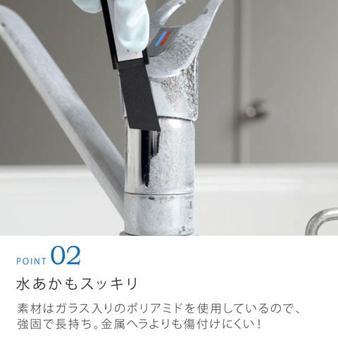 汚れや水あかなどを、スッキリはぎ取る、お掃除ヘラ。