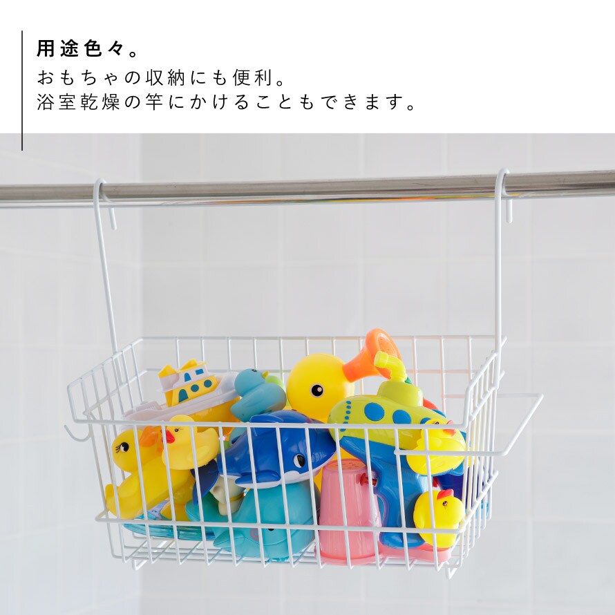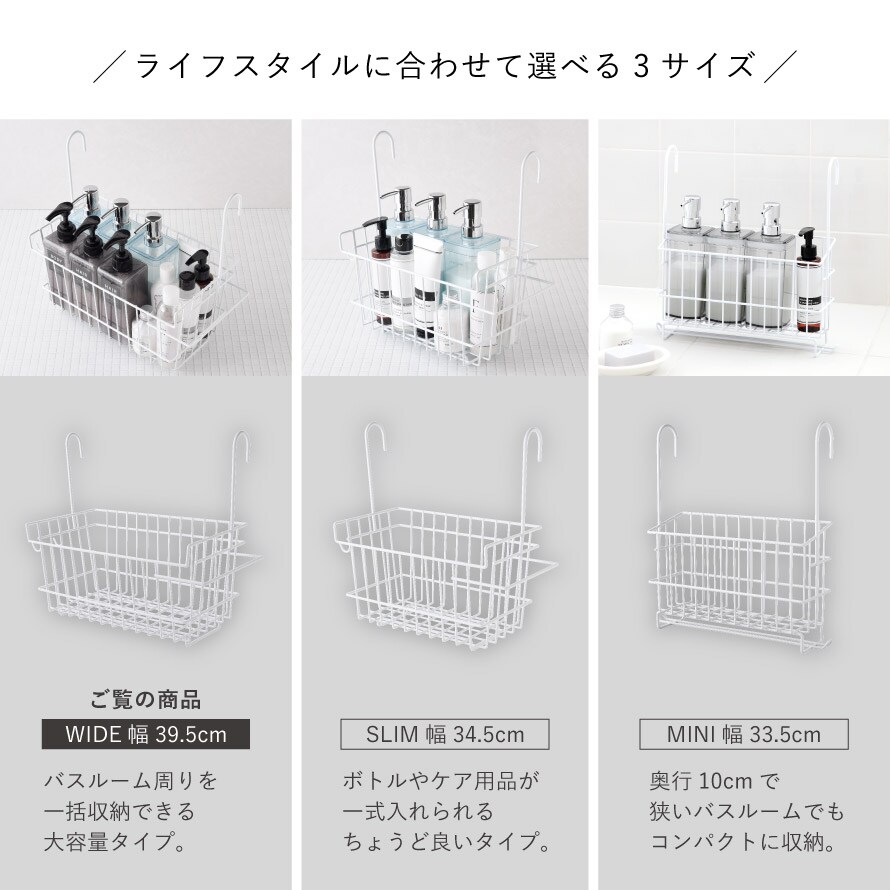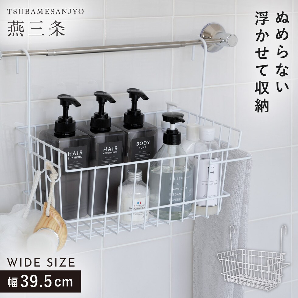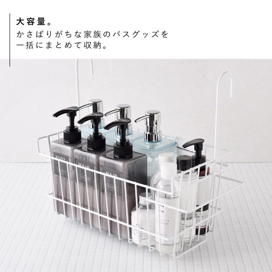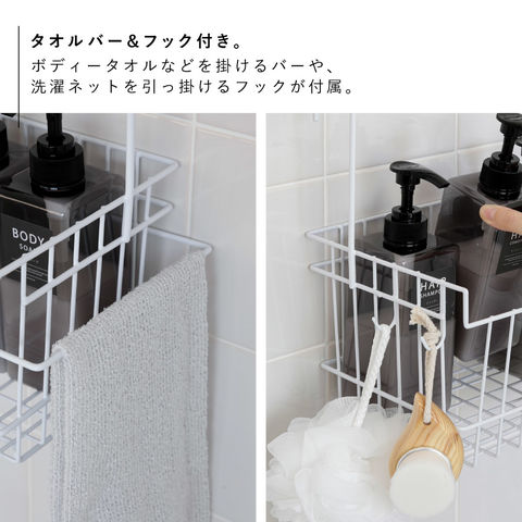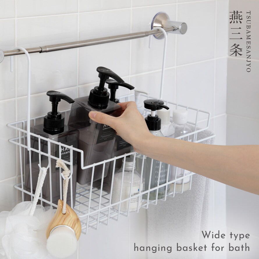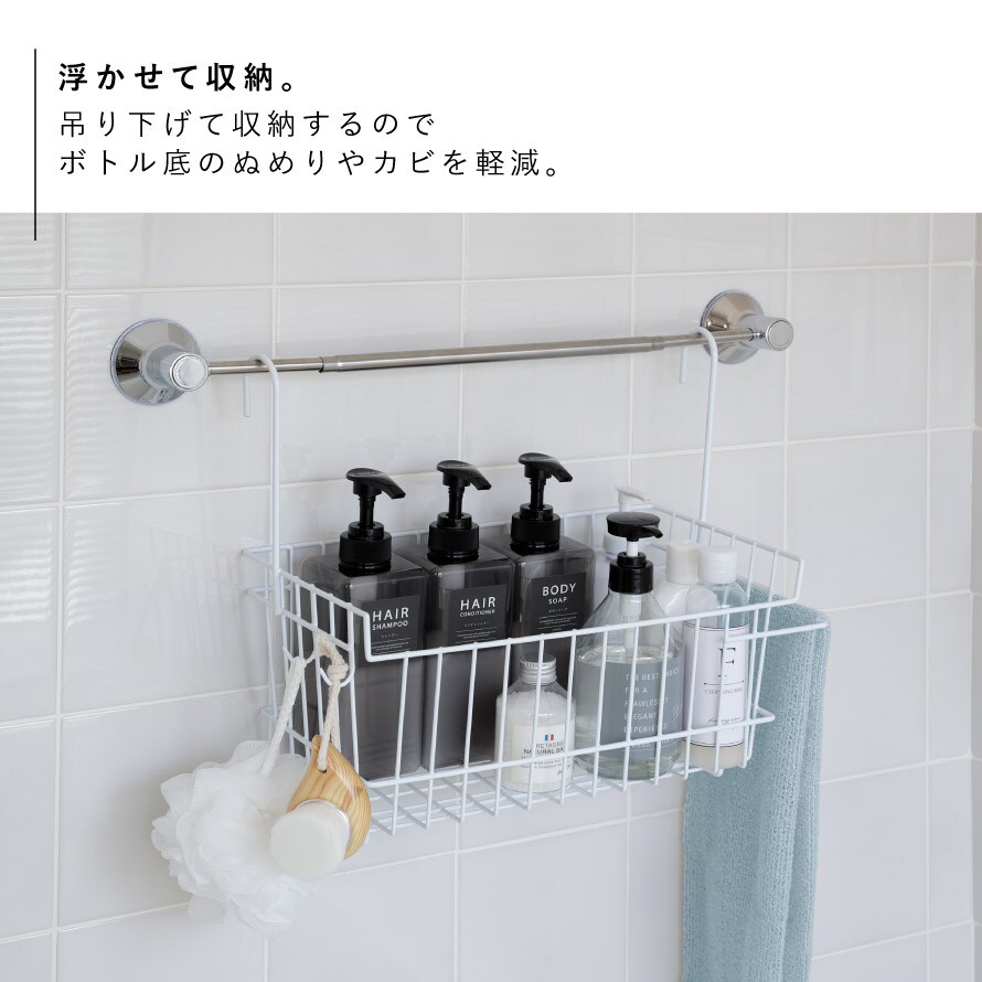 シャンプーラック 日本製 風呂用吊り下げバスケット 燕三条 シャワーラック 吊り下げラック バスラック 収納ラック おしゃれ お風呂 バスルーム 吊り収納 吊るす収納 アーネスト バスケット バス収納 ラック カゴ フック タオルバー ホワイト 白 シンプル ワイヤーバスケット
