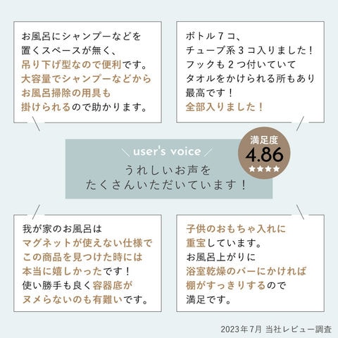 ラックごと浴室から移動する際にも、水はけが良く気持ちよくお掃除できます。