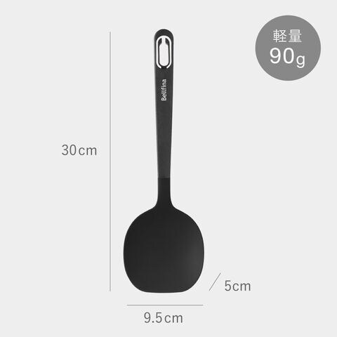 フライパンの底にフィットする直線的な先端形状。スプーン部分は耐熱性と柔軟性に優れたシリコン素材を使用。