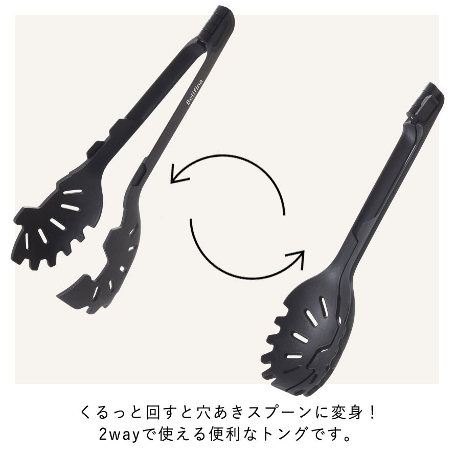 トング お玉 穴あき レードル スプーン 2way 掴む つかむ すくえる 揚げ物 炒め物 茹でる ベルフィーナ 軽い 軽量 丈夫 食洗機対応 食洗機 キッチンツール 調理器具 キッチン 時短 キッチン雑貨 便利グッズ 料理 ベルフィーナ すくえるトング