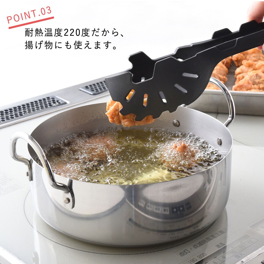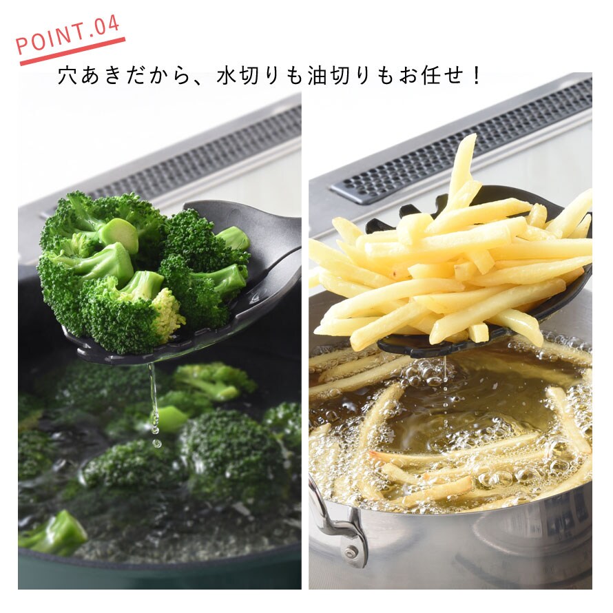 茹でた野菜や揚げ物もサッとすくえます。