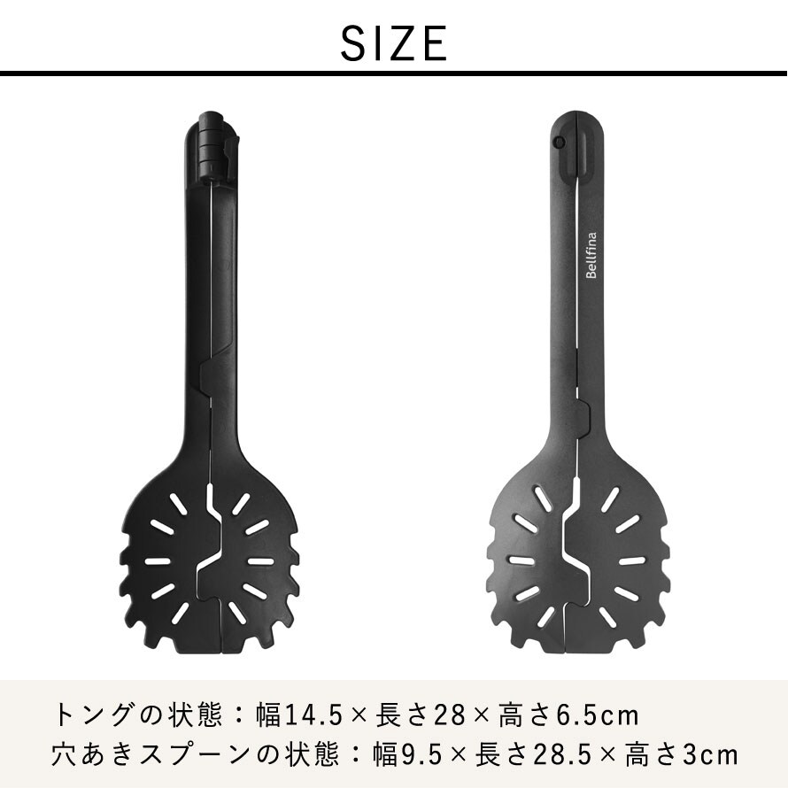 サイズトングの状態/幅14.5×長さ28×高さ6.5、穴あきスプーンの状態/幅9.5×長さ28.5×高さ3cm