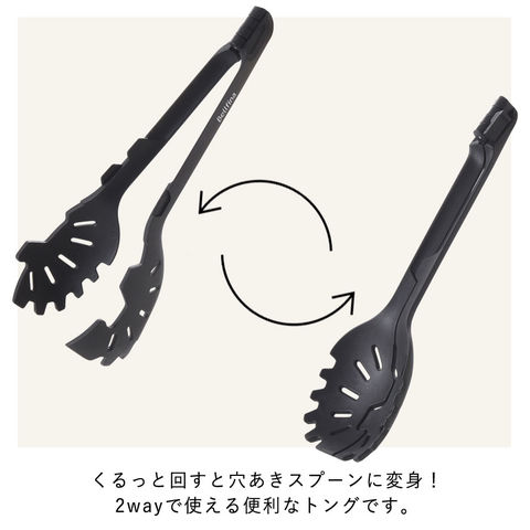 くるっと回せば穴あきスプーンになるトング。