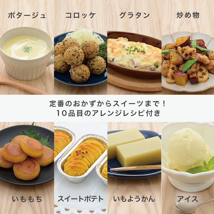 UMAIIMOで焼いた美味しい焼きいもをアレンジできる、オリジナルの10品レシピを付属。