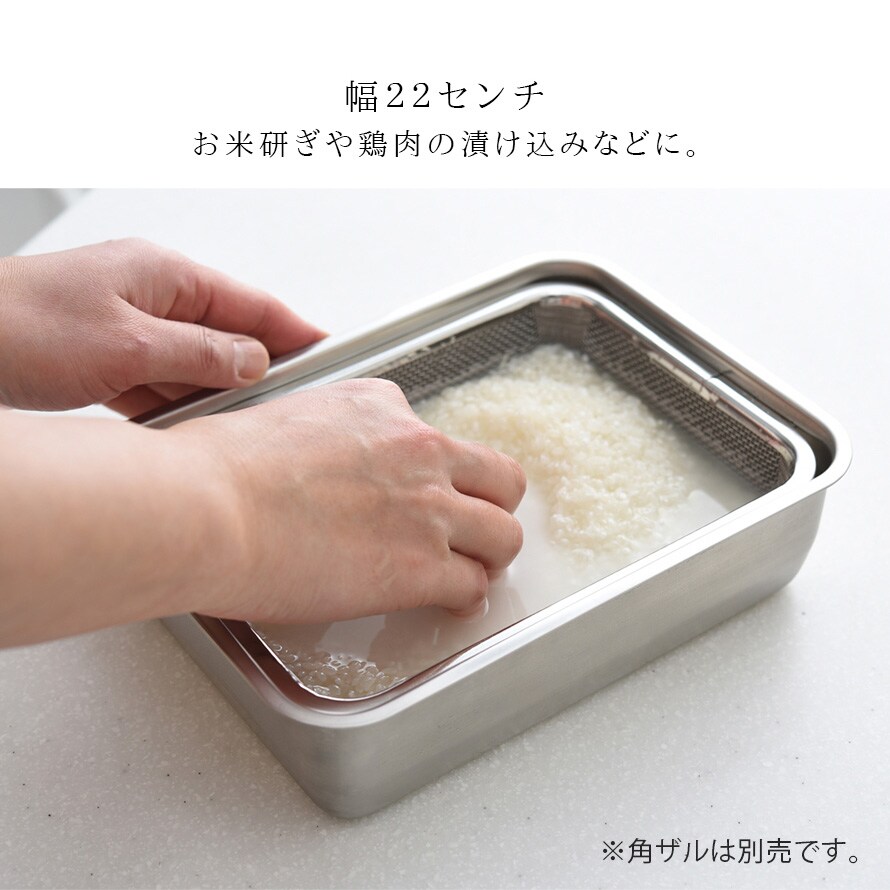 サイズ角バット本体/幅22×奥行16.5×高さ6cm、フタ使用時/幅22.5×奥行17×高さ6.5cm