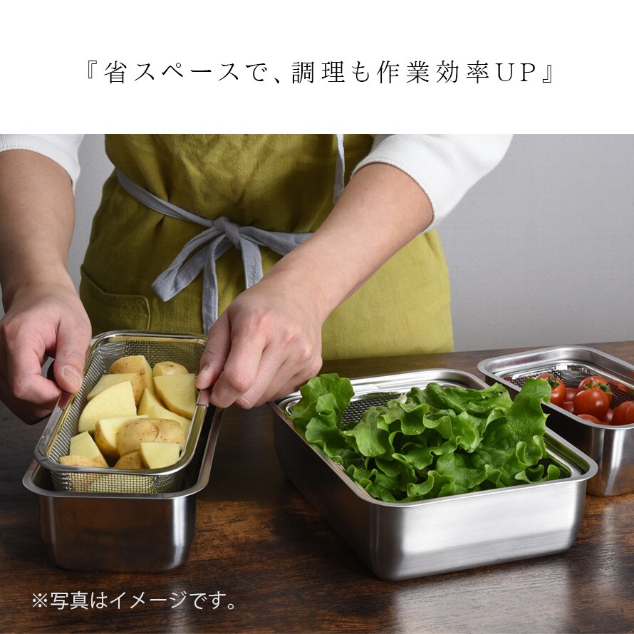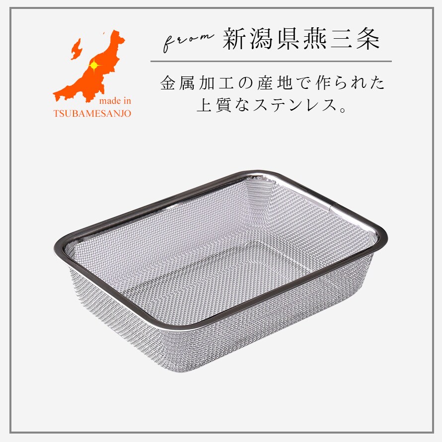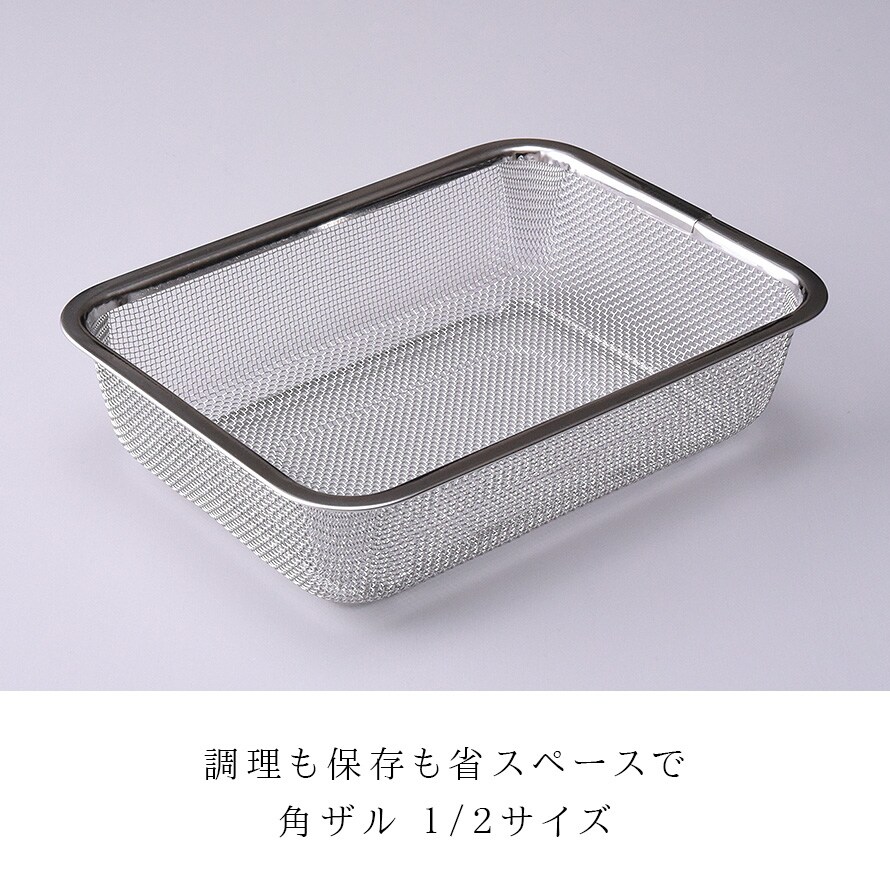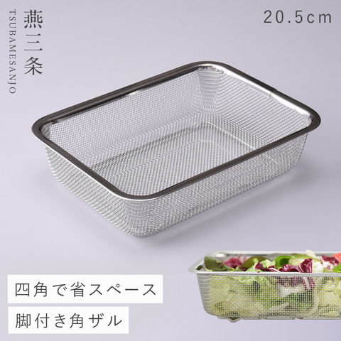 燕三条 ざる ザル ステンレス 日本製 脚付き 角型 キッチン 調理器具 お料理はかどる脚付き角ザル1/2サイズ