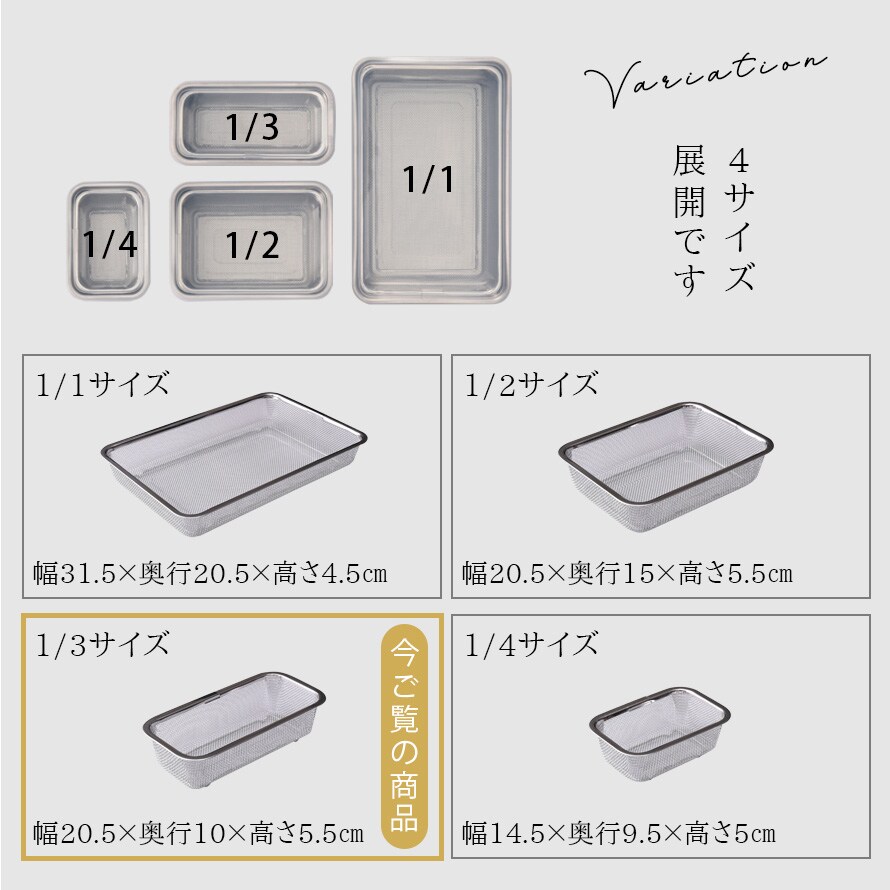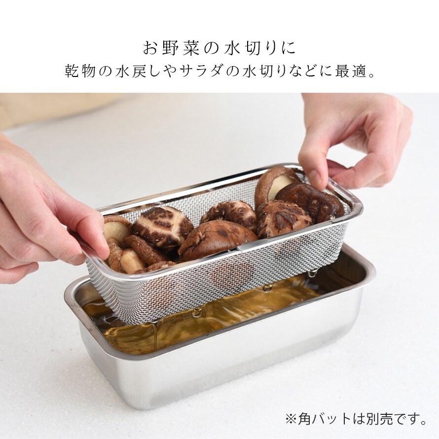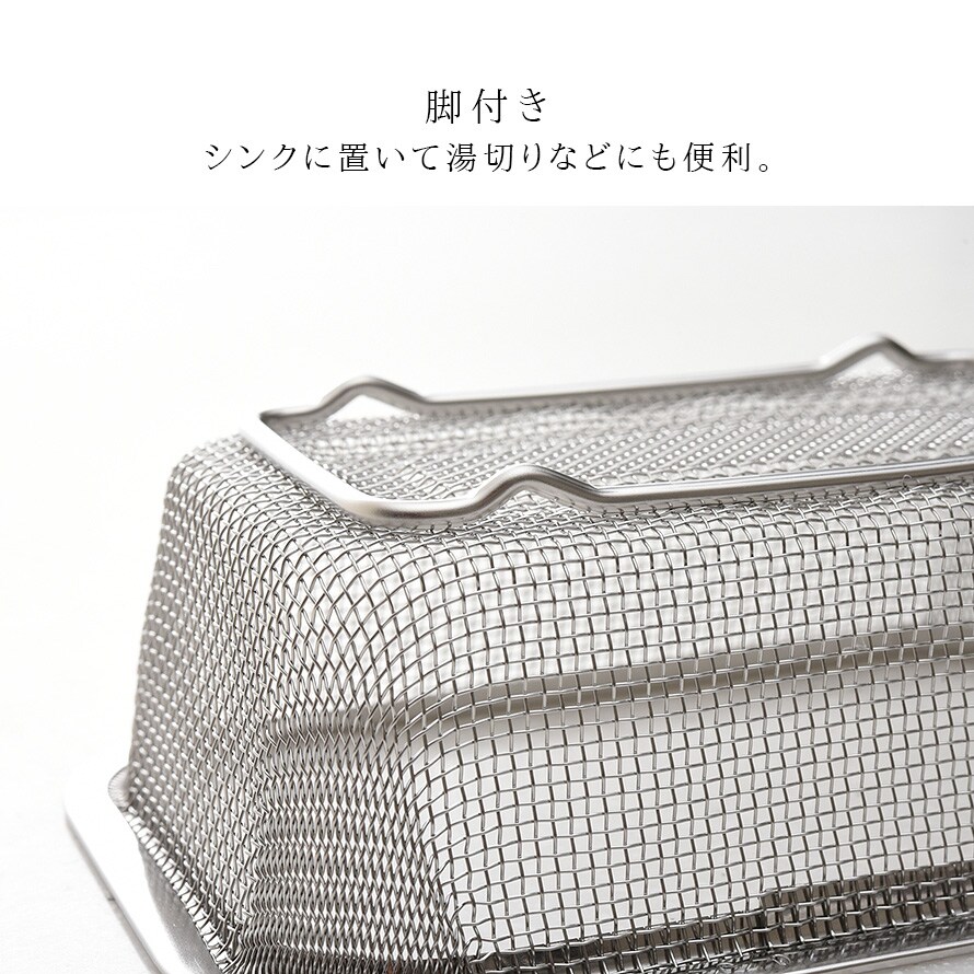 燕三条 ざる ザル ステンレス 日本製 脚付き 角型 キッチン 調理器具 お料理はかどる脚付き角ザル1/3サイズ