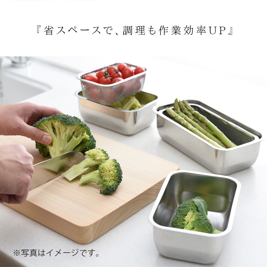 下ごしらえした食材ごとに重ねて置けるから、さらに省スペース。