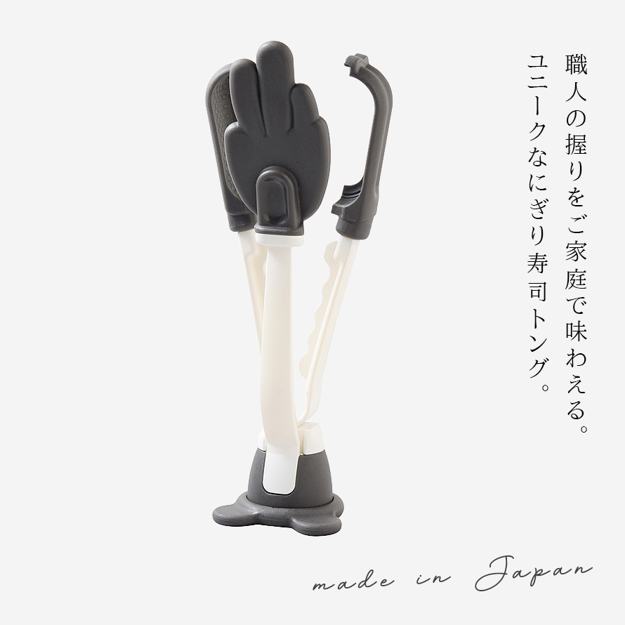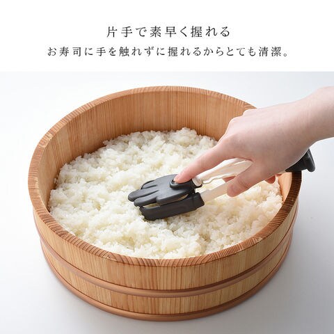 お寿司の美味しさの条件の一つである『スピード』にも着目し、形状をトング型にすることで片手で簡単に素早く握ることができます。