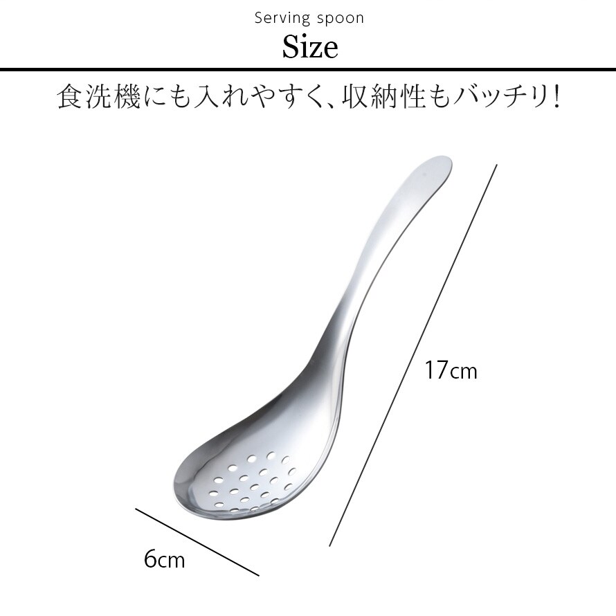 ちょっと短めでたっぷりすくえる。絶妙サイズの穴あき取りわけスプーン。