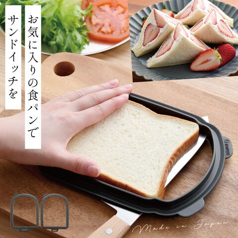 「うす~く切ってサンドイッチしましょ」はその名の通り、一般的に売っている5枚切りや6枚切りの食パンを手軽にカットでき、パン1枚分でサンドイッチやホットサンドができるようになる食パン用カットガイドです。