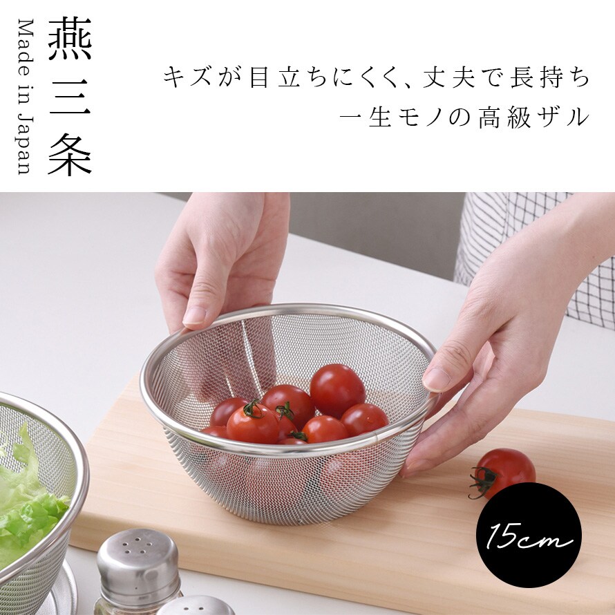 金属加工の産地、新潟県燕三条産の高品質ステンレスザル15cm。