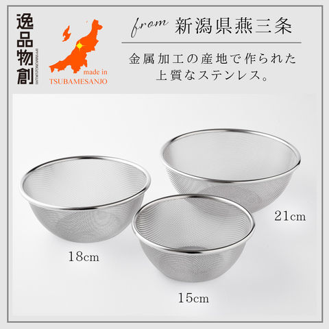 金属加工の産地、新潟県燕三条産の高品質ステンレスザル18cm。