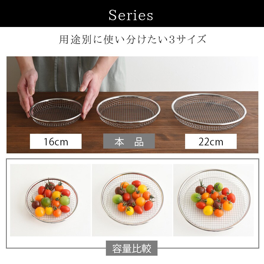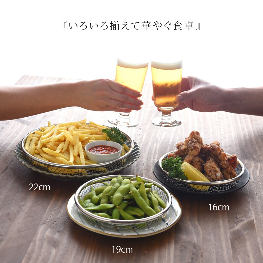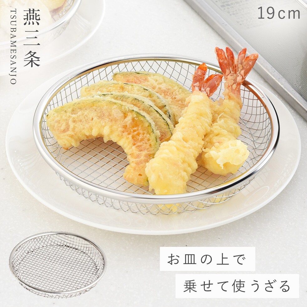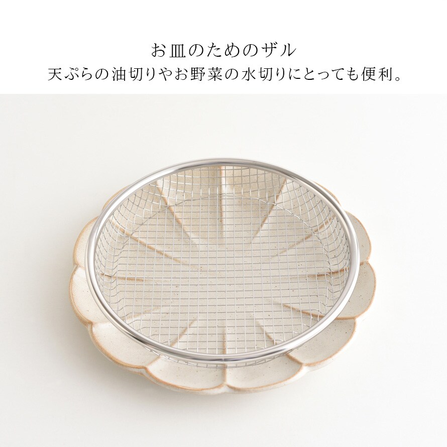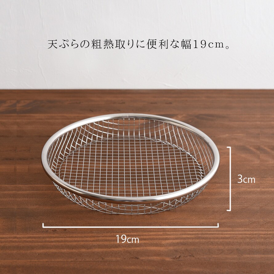19cmは揚げ物の盛り付けだけでなく、お蕎麦や麺類の盛り付け、野菜の水切りなど様々な用途で使用できます。