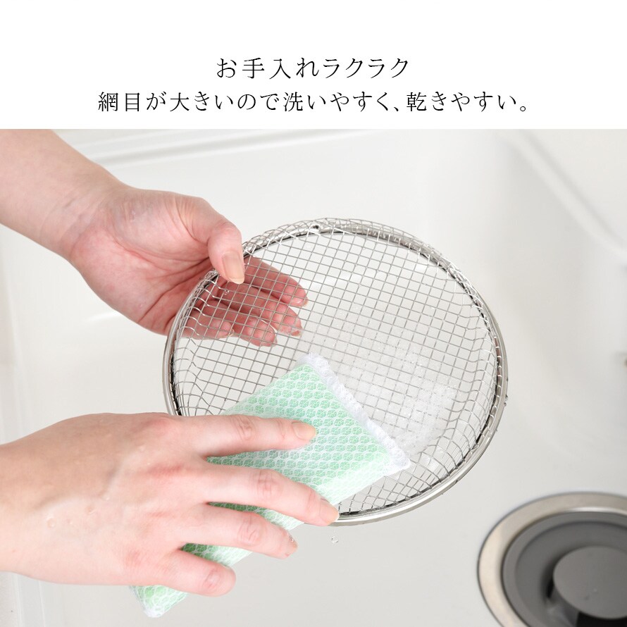 網目が大きいから洗いやすく、水切れも良く乾きやすいのも使いやすいポイント。