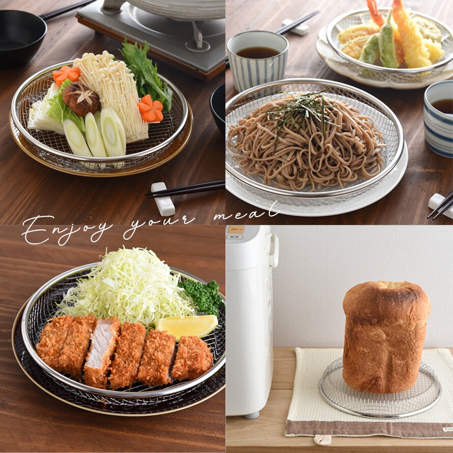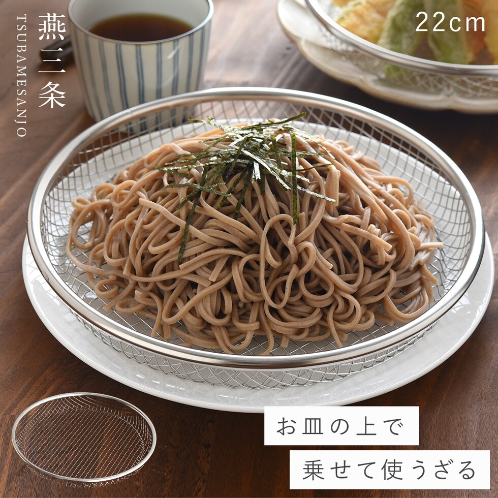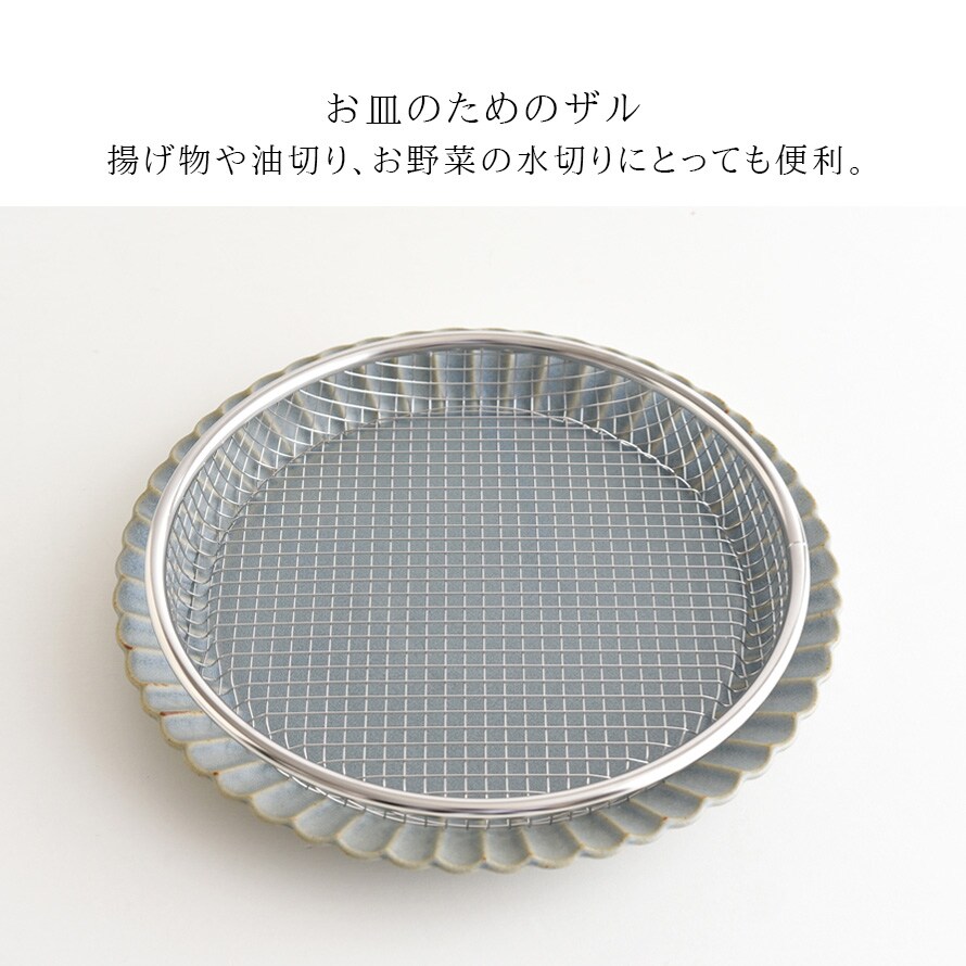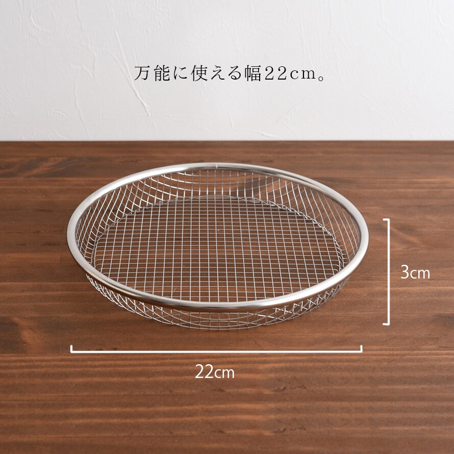 22cmは揚げ物の盛り付けだけでなく、お蕎麦や麺類の盛り付け、野菜の水切りなど様々な用途で使用できます。
