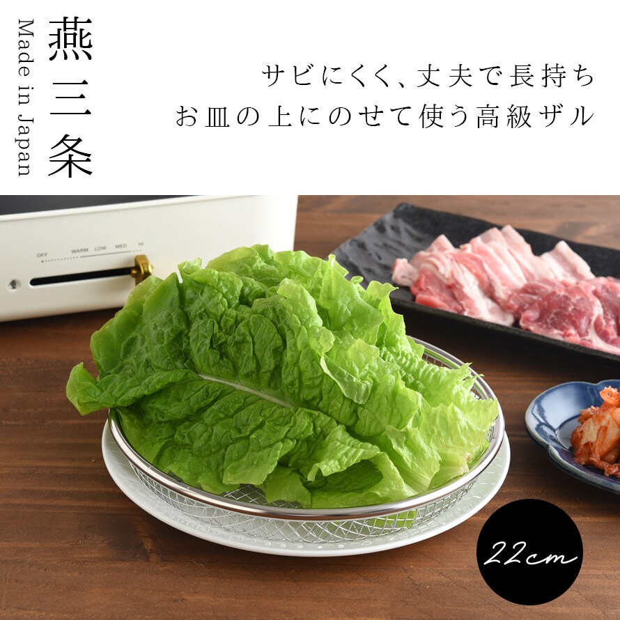 燕三条 ざる ザル ステンレス 22cm 日本製 浅型 皿 キッチン 調理器具 逸品物創 お皿のざる22cm